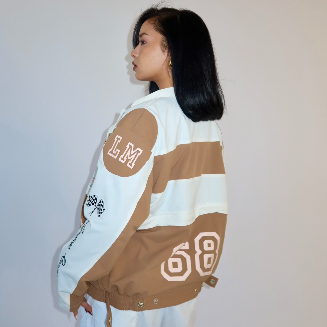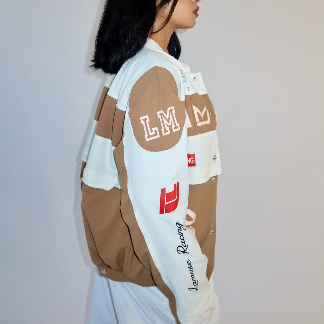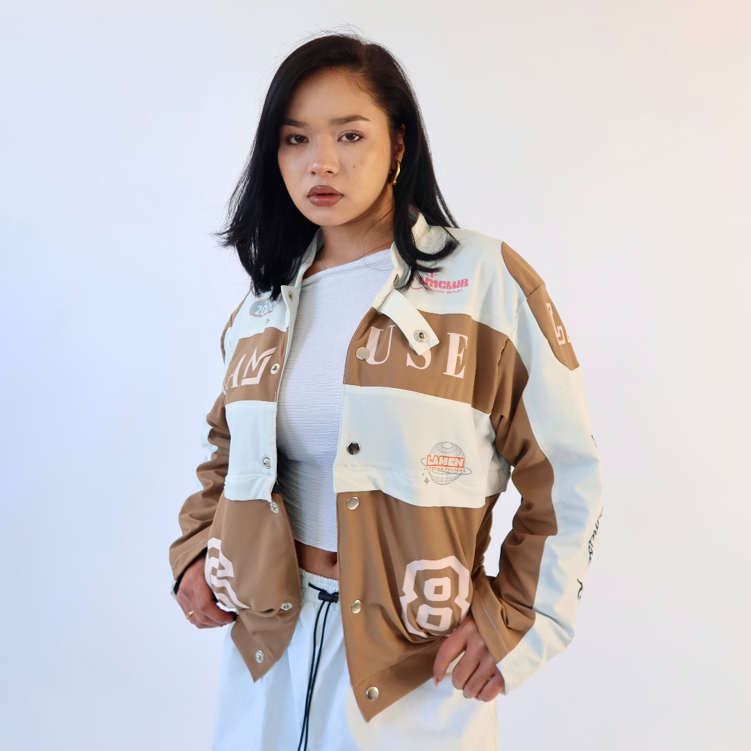 Introducing our innovative 3-in-1 jacket inspired by the sleek aesthetics of racing jackets with cutting edge fashion that offers three distinct styles (full length oversized jacket, cropped jacket & Skirt) in one dynamic package.