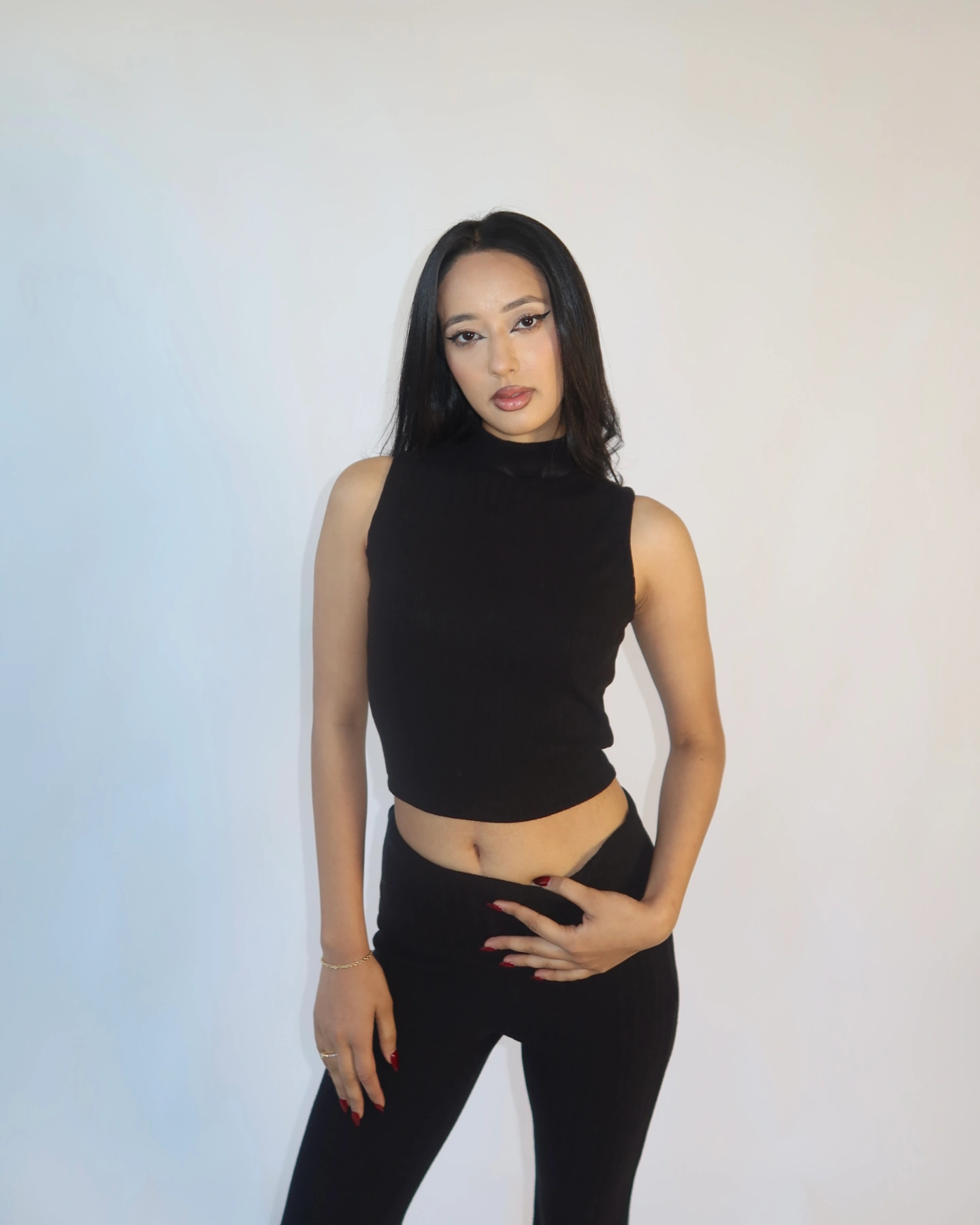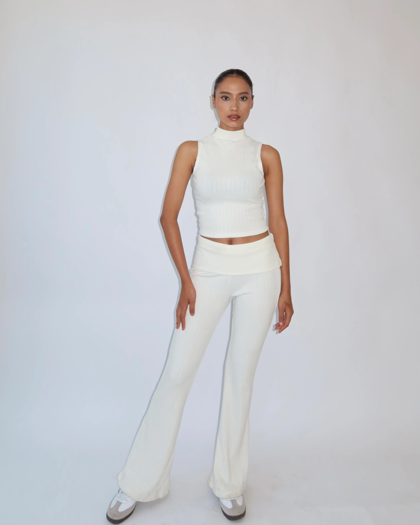 Introducing the Carrie Knit Top, your new go-to for cozy sophistication. This sleeveless high-neck top is crafted from soft ribbed knit fabric, offering a flattering, form-fitting silhouette that pairs effortlessly with any bottom. Pair it with matching Carrie knit trousers or denim for a polished yet relaxed look.