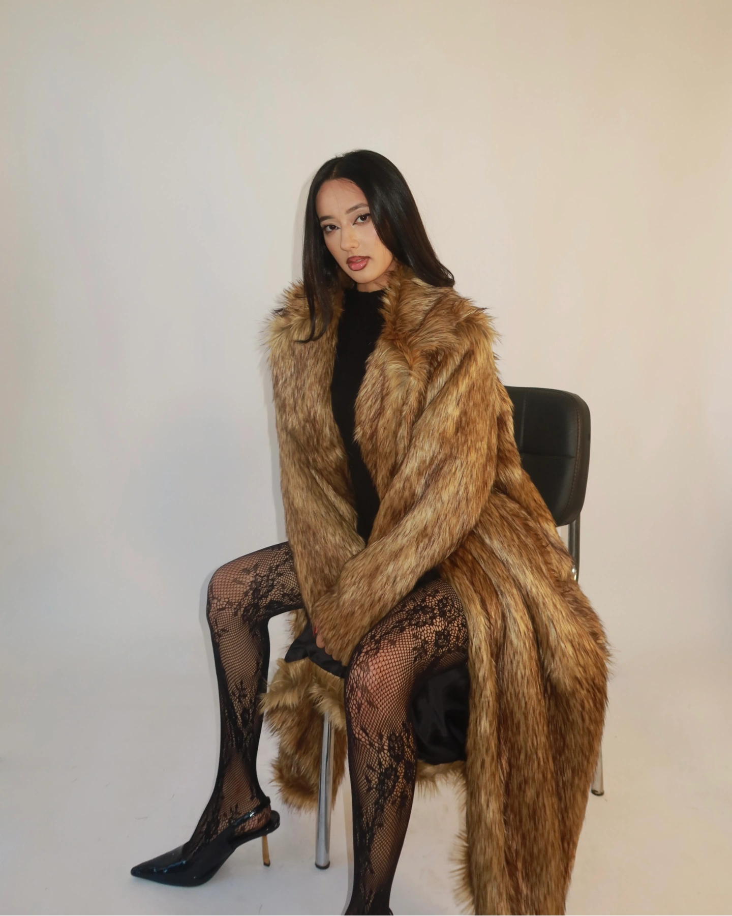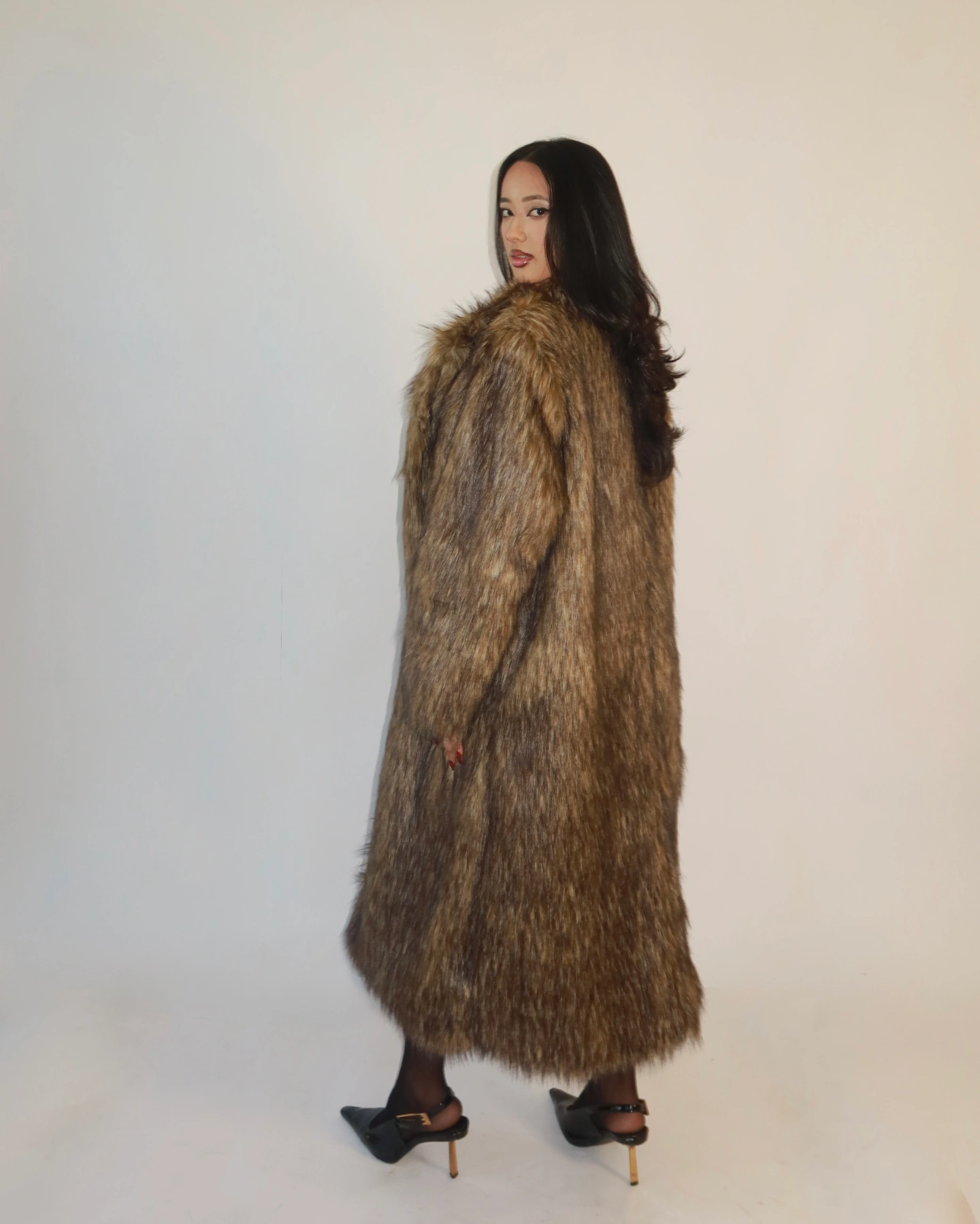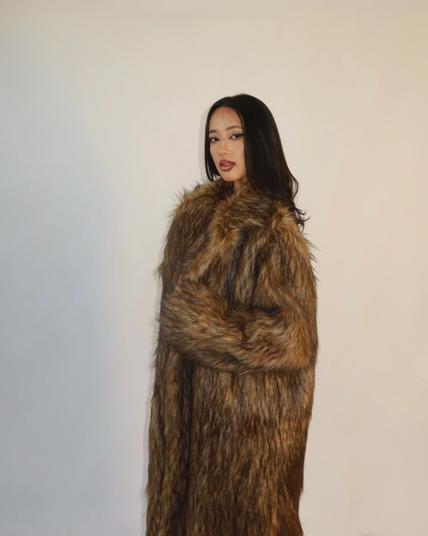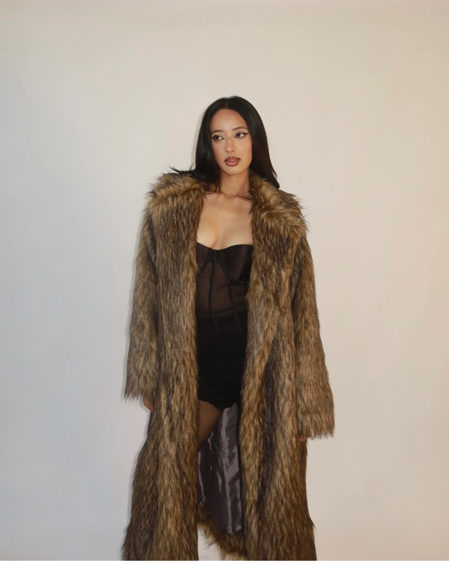 The longline silhouette adds instant drama, while the plush shoulders and full, voluminous fur give the coat a runway ready presence! Fully lined with a smooth satin interior, the Cassie Overcoat keeps you warm without compromising comfort or movement. Whether you’re elevating a night out look or layering over everyday denim, this piece brings that chic, cinematic energy you can feel.