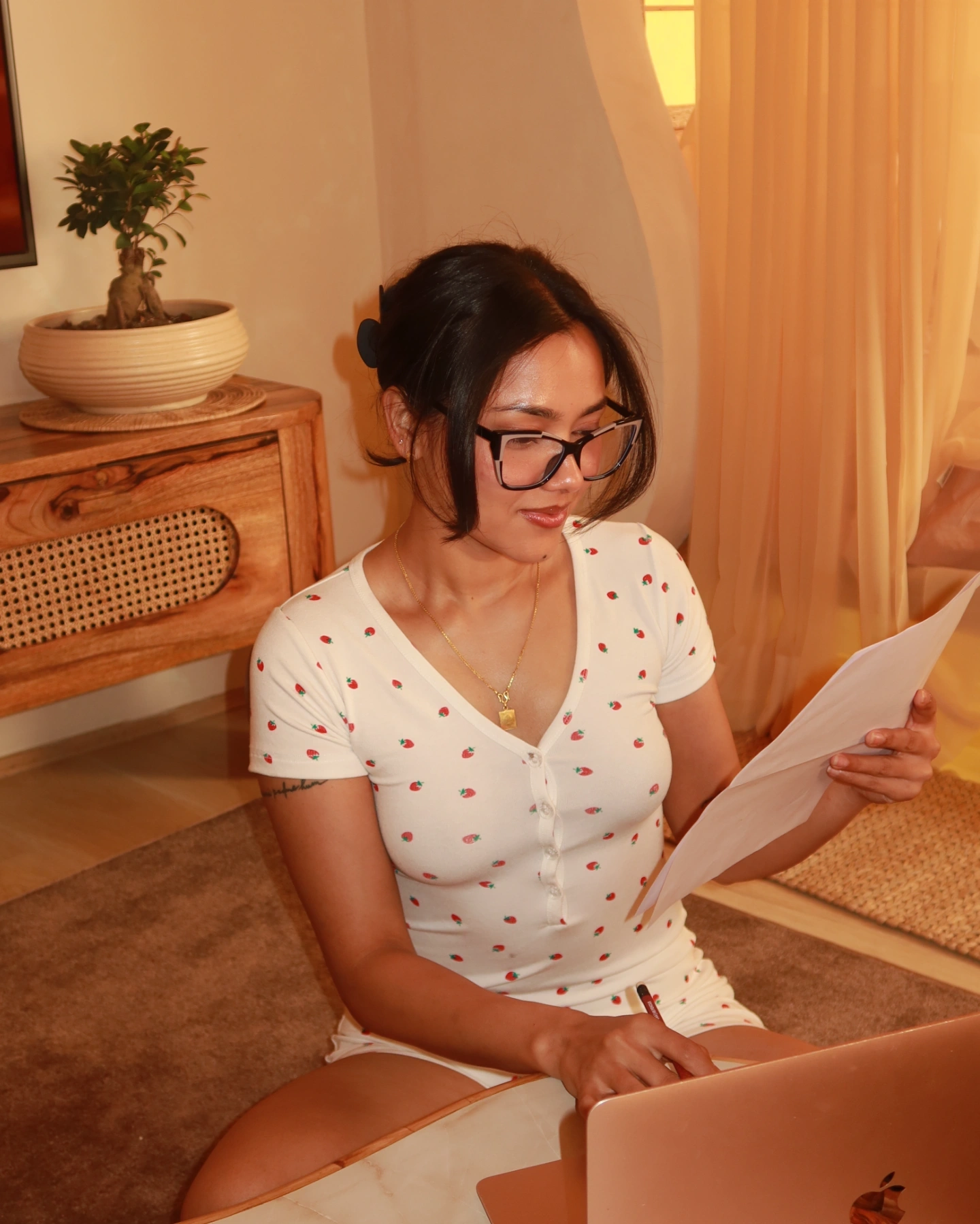 A soft and cozy half sleeve PJ designed for effortless comfort and everyday ease. Crafted from breathable stretch cotton rib fabric, this sleepwear essential features a flattering fitted silhouette with a delicate V shaped neckline, front button detailing, and comfortable half sleeves for a feminine touch. The playful all over print adds charm and freshness, making it perfect for lounging at home, slow mornings, work from home days, or restful nights. Light, stretchable, and easy to wear, this PJ dress blends comfort and style beautifully.