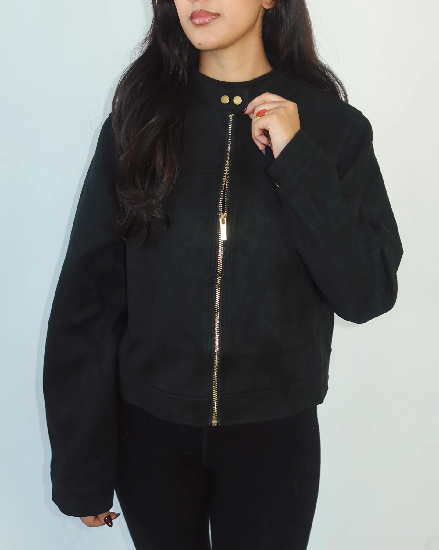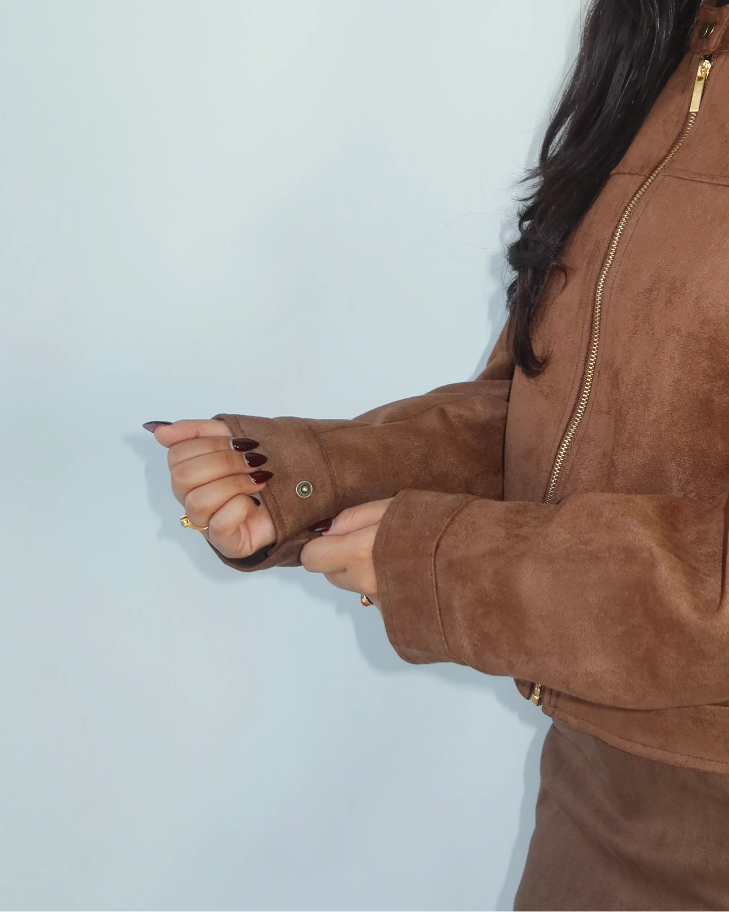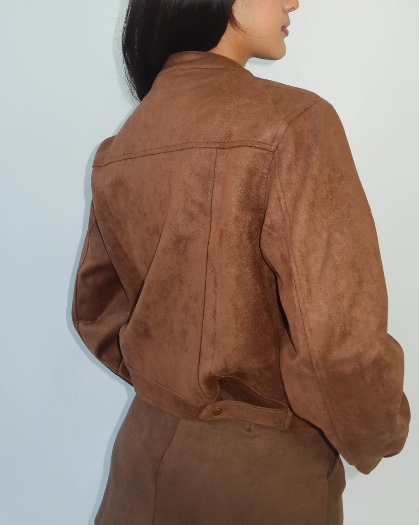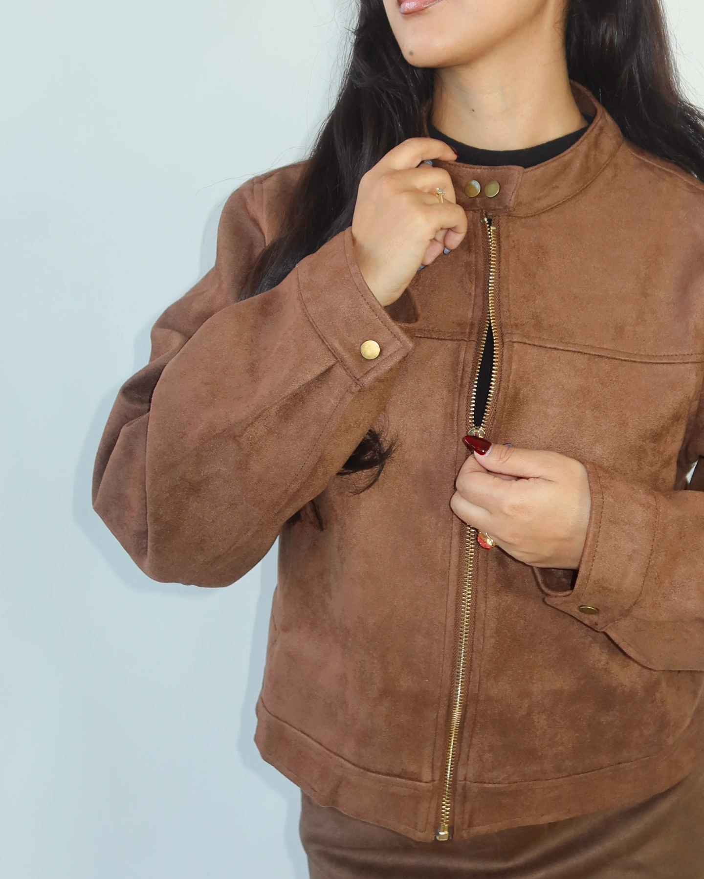 Make a bold yet timeless statement with the Rodeo Suede Jacket. Designed with a sleek, modern silhouette, this jacket blends effortless style with everyday versatility. Crafted from soft suede, it offers a refined texture and a comfortable fit that elevates any look. Whether layered over casual basics or styled for a night out, the Rodeo Suede Jacket delivers understated sophistication in every detail.