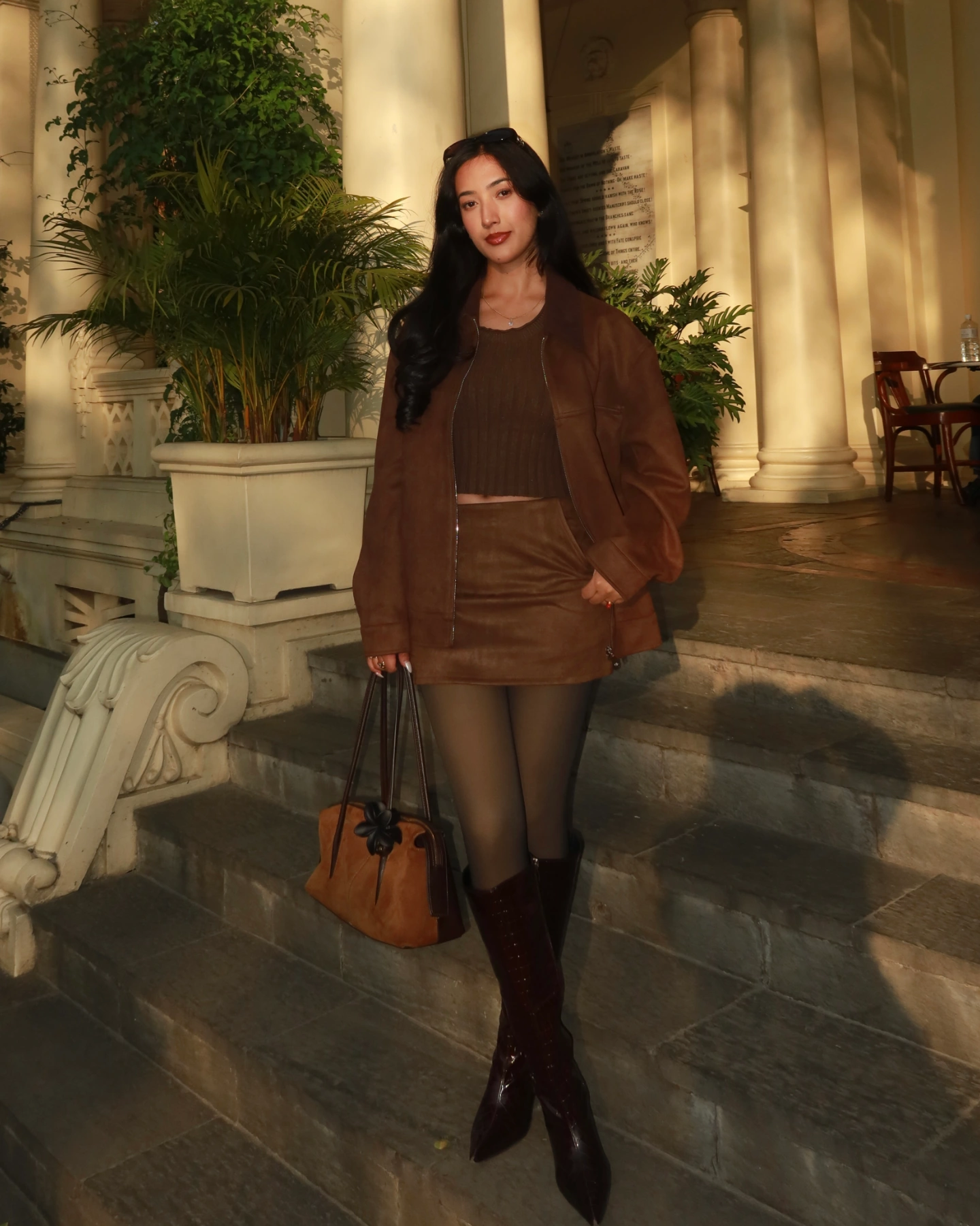 Rodeo suede skirt with built in inner shorts is designed to deliver the perfect mix of comfort and street style chic. Crafted from soft, stretchable suede fabric throughout, it offers effortless movement with a flattering high waist fit. Style it with crop tops, fitted knits, hoodies, or boots for a trendy finish. Ideal for casual outings, brunch dates, shopping days, weekend hangouts, and everyday wear, this skirt is a must have for relaxed yet stylish looks.