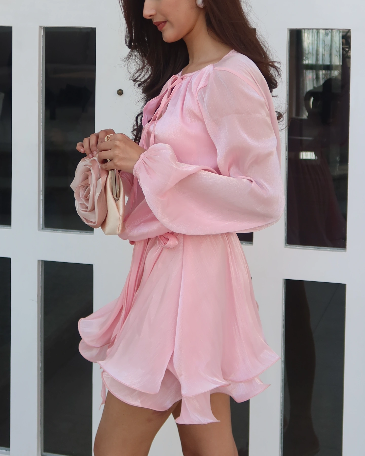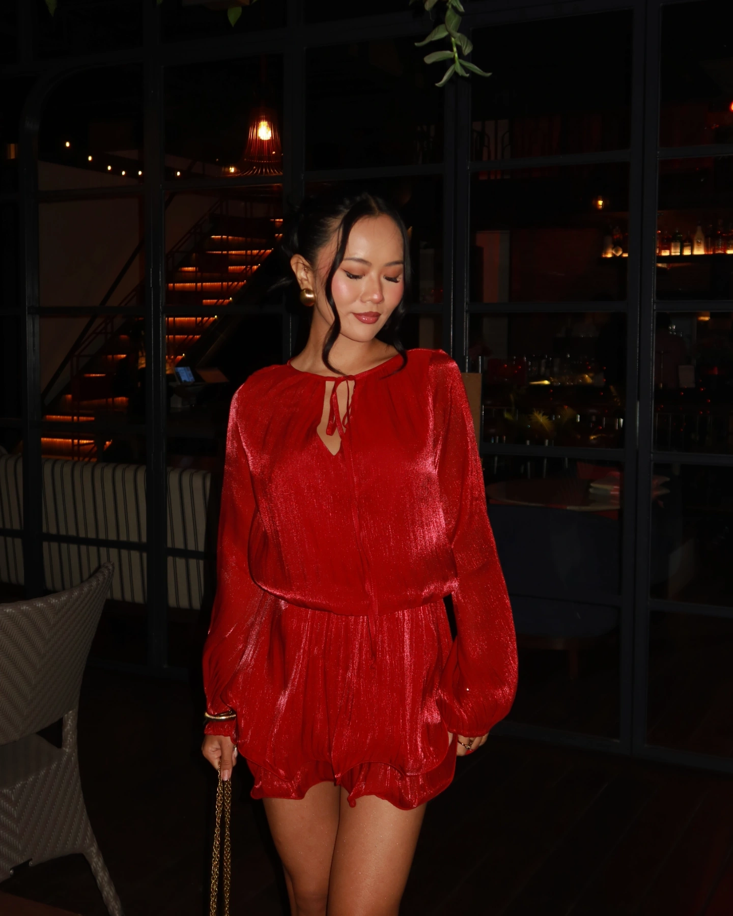 Radiant confidence in the Scarlet Dress, a captivating blend of romantic volume and bold sophistication. Crafted from an Organza fabric, it features dramatic bishop sleeves and a delicate tie neck that catches the light beautifully. The integrated wrap around belt ensures a custom fit. This dress is a must have for those seeking a high fashion, airy silhouette that balances ethereal charm with a striking, modern edge. Style this luminous piece with metallic stilettos and gold hoops for a high glamour finish, or opt for strappy sandals for sunset cocktails, festive holiday parties, and upscale dinner dates where you want to make an unforgettable entrance.